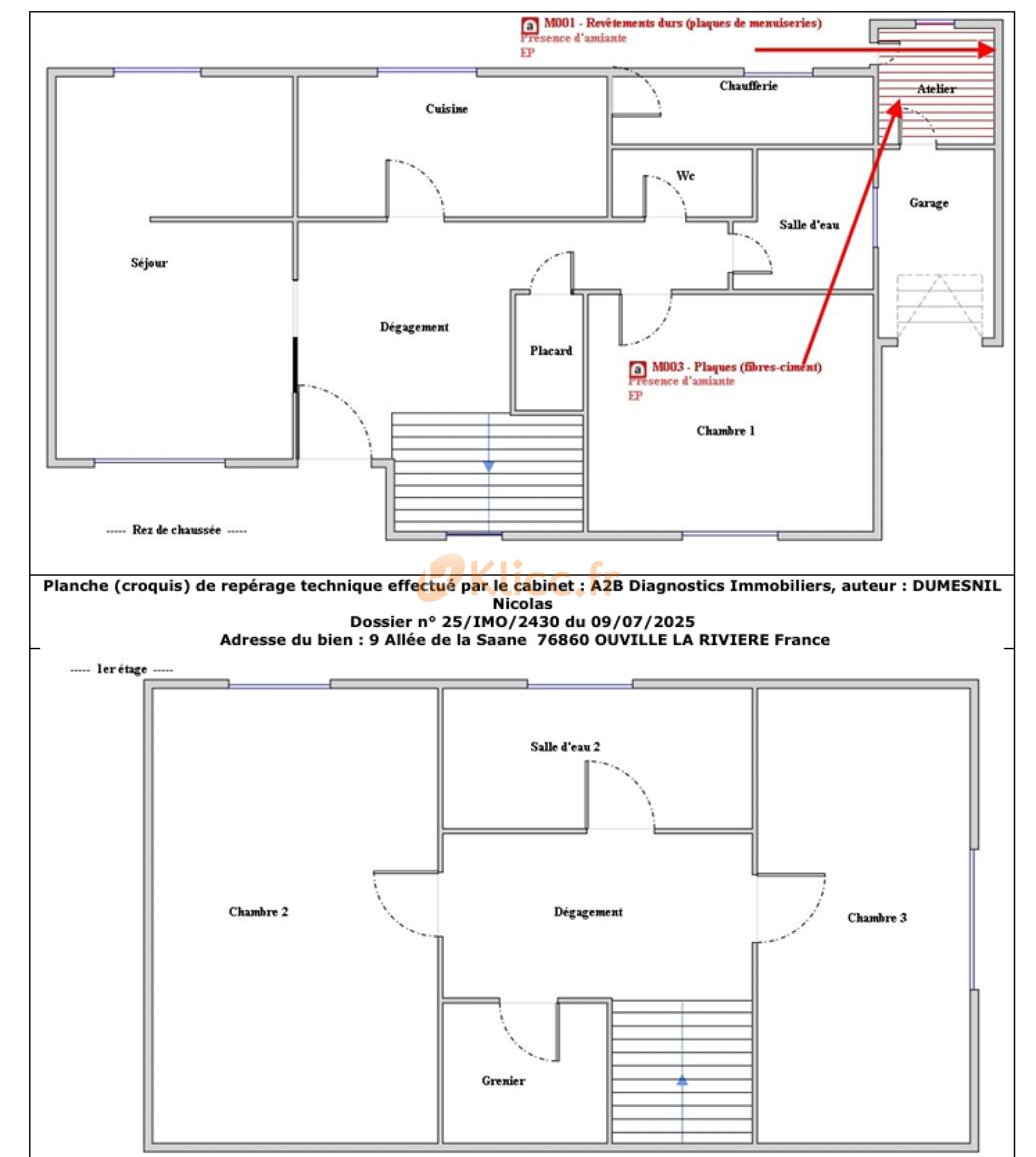 A l'étage palier avec rangement desservant une piece d'eau et 2 chambres. Surf. Hab. Env : 100m²