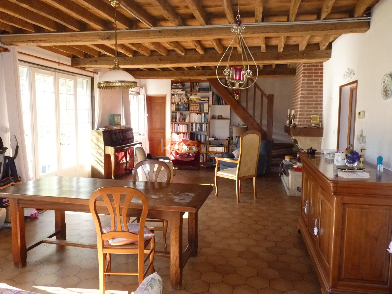 En bon état général, elle offre 150m² au sol et beaucoup d'atouts avec notamment une grande pièce de vie avec cheminée ouvrant sur une terrasse en bois exposée Sud-Ouest, un espace cuisine lumineux, un wc, une salle de bains, et surtout une chambre en rez de chaussée. A l'étage , un palier avec des placards dessert 3 chambres dont 2 très grandes avec parquet. Une pièce bonus, actuellement pièce de rangement, pourrait devenir une salle d'eau.