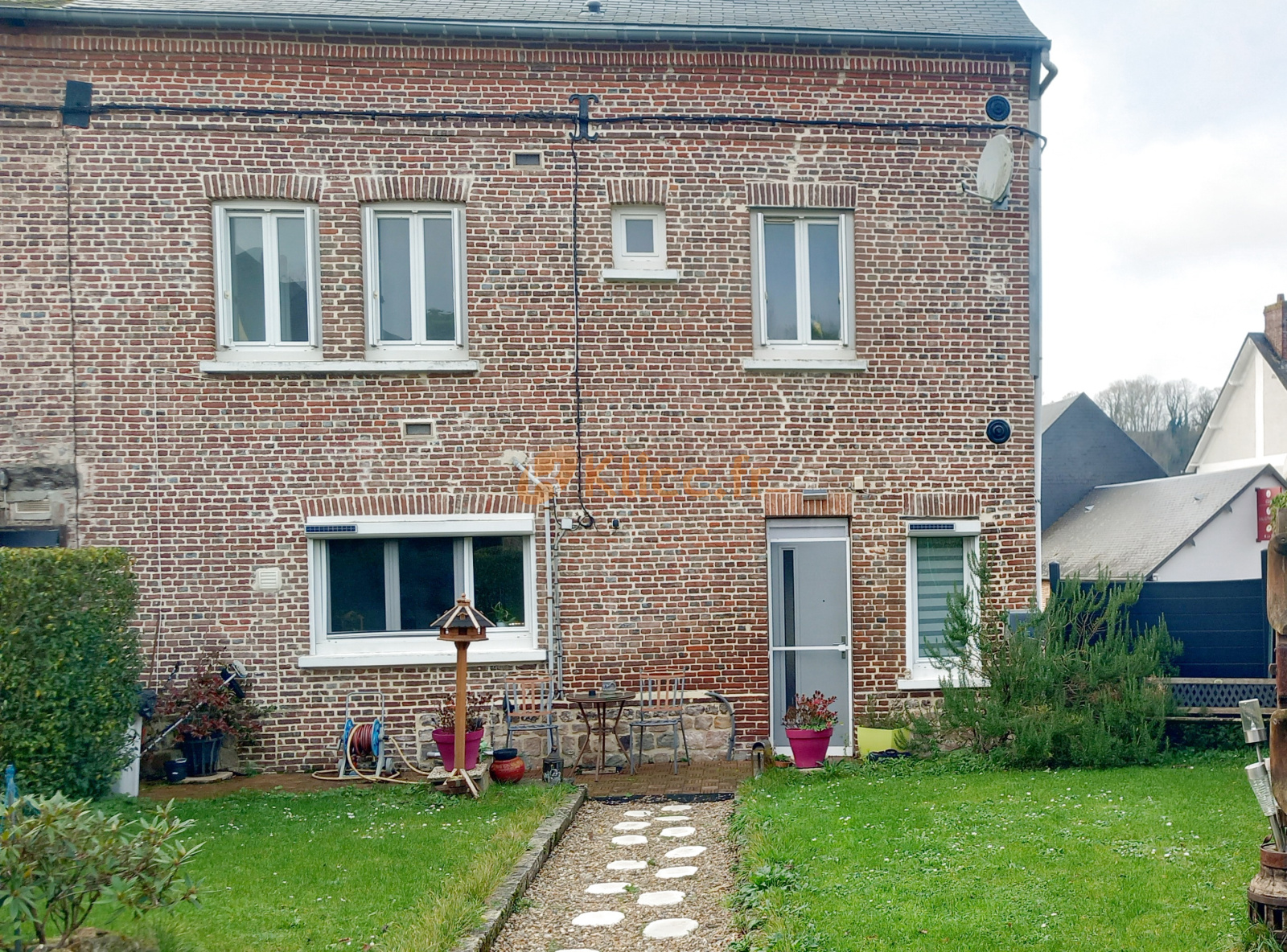 A l'extérieur, un joli jardin comprenant une petite terrasse d'été avec une tonnelle, deux remises et 2 récupérateurs d'eaux de pluie.