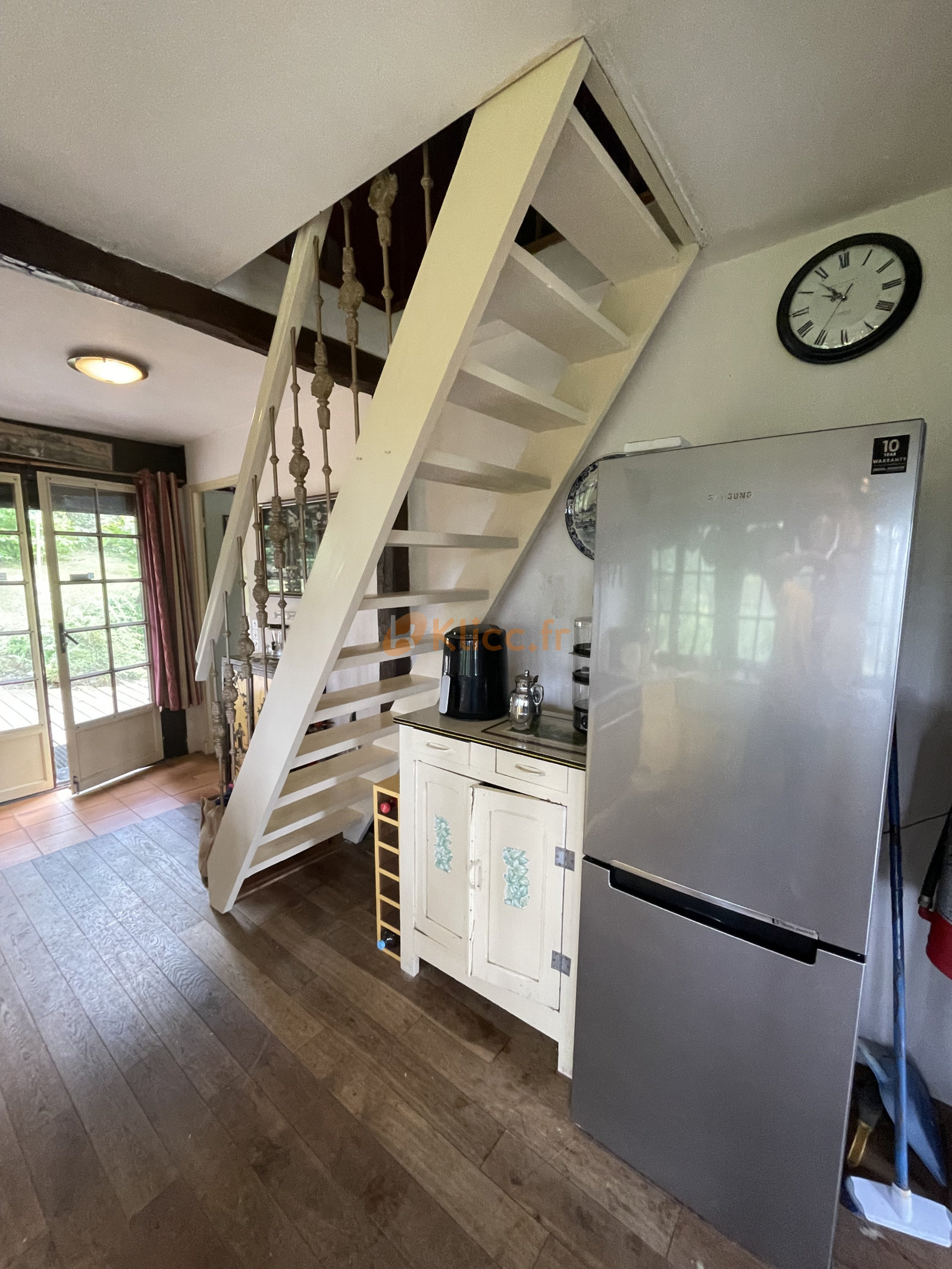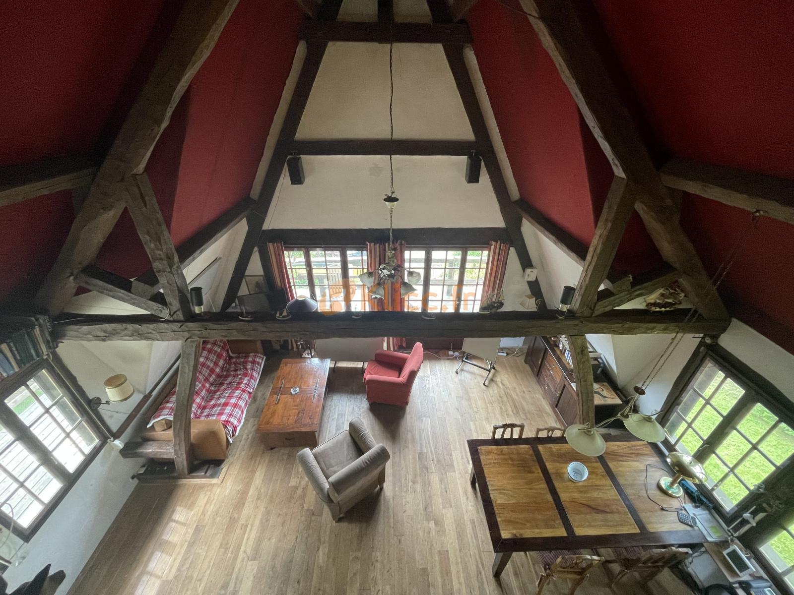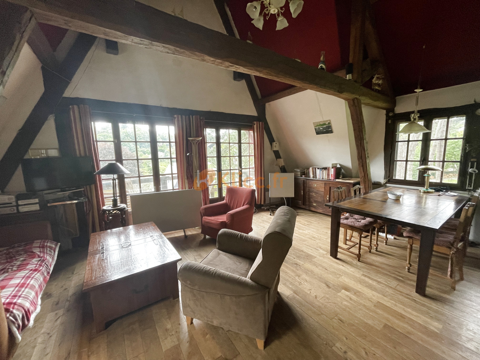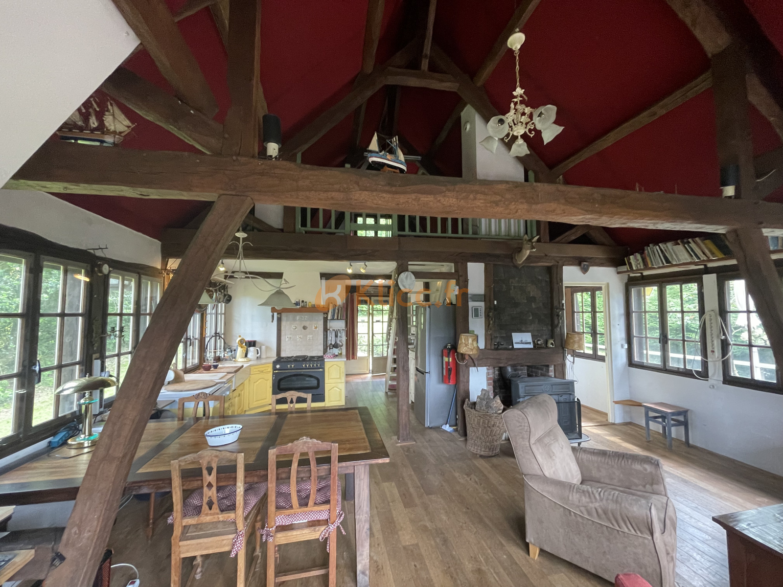 Cette chaumière atypique, pleine de charme, vous offre en rez de chaussée : un studio 35m² env. à rafraichir avec son coin cuisine et une salle d'eau et wc. Au rez de jardin : une petite entrée dessert à droite une salle de bains et douche avec wc, à gauche une petite chambre puis une jolie pièce de vie avec sa partie cuisine américaine aménagée et équipée. Son plafond cathédrale, son parquet massif, son pôele à bois et ses fenêtres sur 3 côtés la rende très agréable en hiver comme en été. Un escalier vous mènera à une mezzanine de 25m² à usage de deuxième chambre ou bureau.
