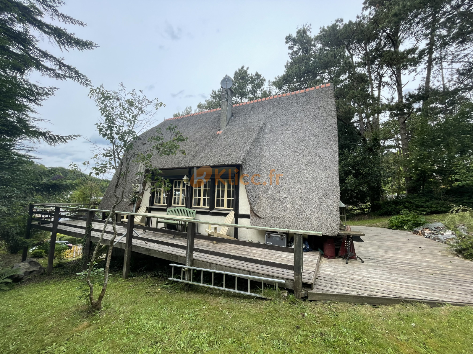Le chaume est en bon état général , le bien est relié au tout-à-l'égoût. Cette maison de caractère vous séduira par sa terrasse en bois sur pilotis exposée Sud-ouest et offrant une petite vue mer .